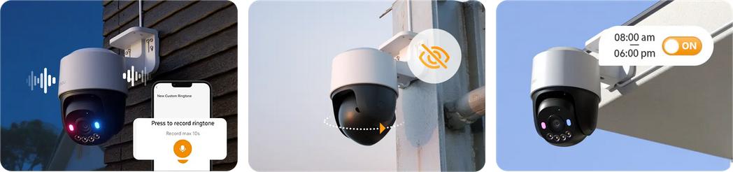 Kamera turi vaizdinę ir garsinę signalizacijos funkciją, kuri veiksmingai atbaido įsibrovėlius. Mirksinčios raudonos ir mėlynos šviesos bei sirena veikia kaip atgrasymo priemonė ir padidina saugumą.