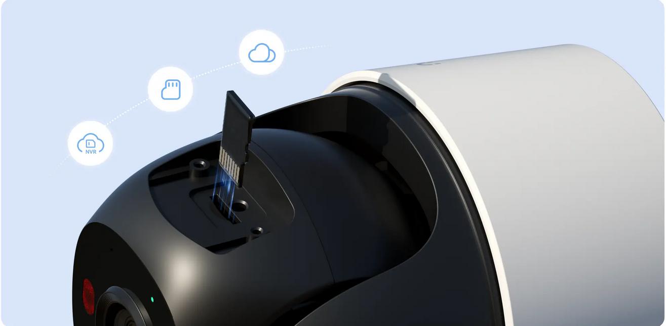 Palaiko įrašymą debesyje, „microSD“ kortelėje (iki 512 GB) ir vaizdo įrašymo įrenginyje (NVR), užtikrinant patogią prieigą prie medžiagos ir duomenų saugumą.